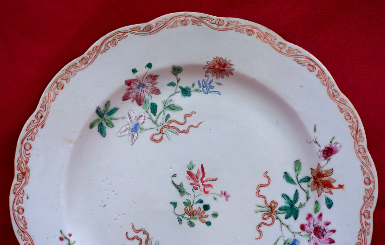 For our French-speaking friends Assiette en porcelaine de Chine à décor de fleurs. Compagnie des Indes, époque Qianlong XVIIIe siècle. Diamètre 22.8 cm. Parfait état.