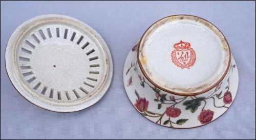 Boite à senteur, pot-pourri, en porcelaine décoré main, par Wong Lee. Signée sur son fond de la marque couronnée. Hauteur 7.5 cm, diamètre 13 cm. Parfait état.