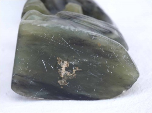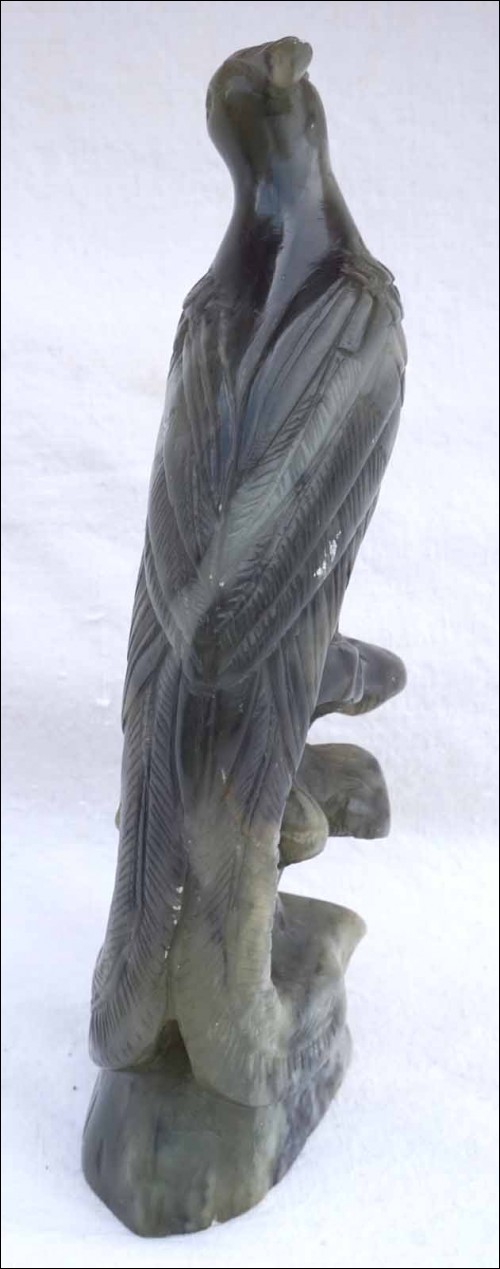 Ph?nix de Chine, en serpentine couleur jade vert épinard, fin Qing dynastie. Il est sculpté à la main comme la pierre sacrée. Bel état, rares chocs. Hauteur 20 cm, largeur 7,8 cm.
