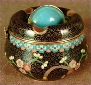 Cloisonne Ashtray Peach Flowers Meijin