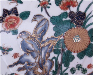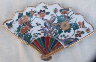 Fan Shaped Decorative China Porcelain Bird Flowers Gilt