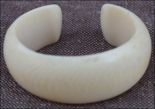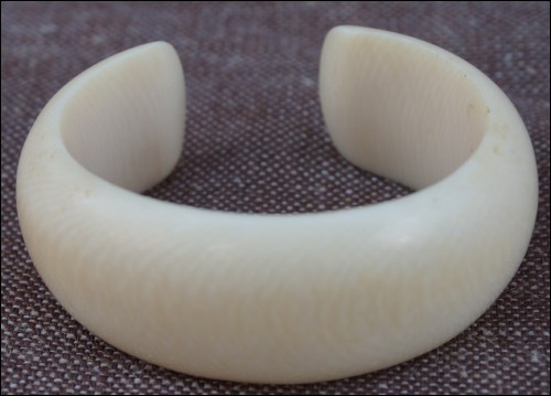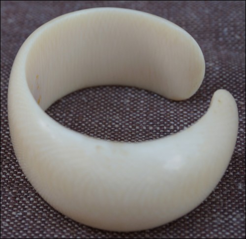 Bracelet de femme annamite en ivoire, période Indochine. Bel état, Largeur 6,6 cm, profondeur 2,6 cm, hauteur 5,3 cm, épaisseur 0,7 cm, poids 38 grammes.