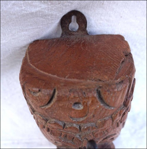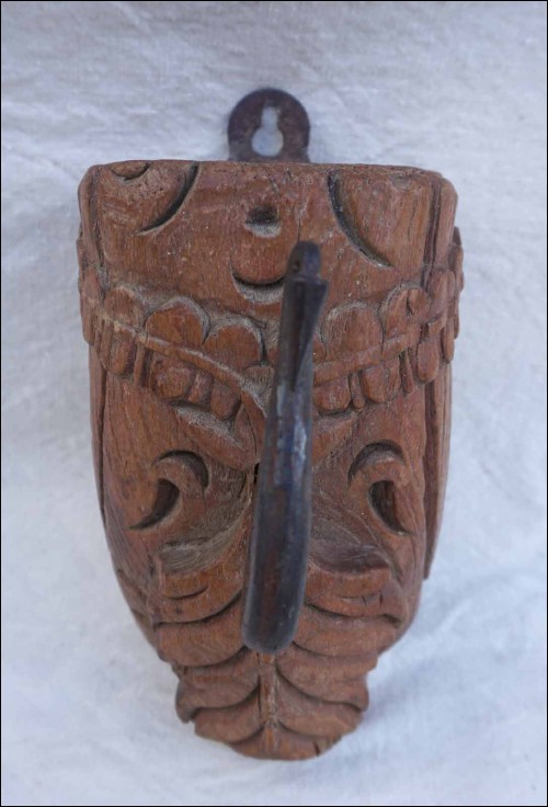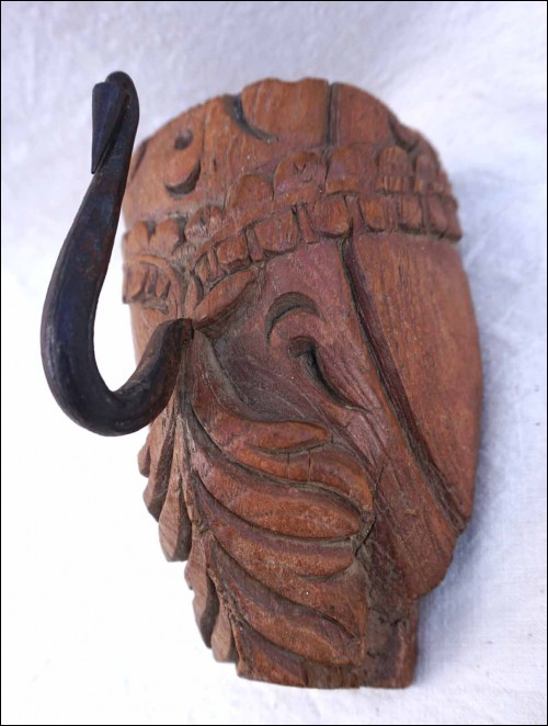 Antique hand carved wood coat wall hanger with wrought iron hook showing hindu Ganesh with elephant head made in Indian during the 19th century. 7" (17.8cm) height, 3 3/4" (9.5cm) width, 4 1/4" (11cm) depth. Beautiful condition as shown by the following pictures.
