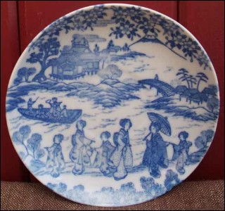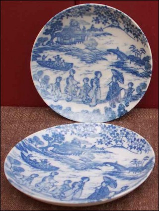 Japan Porcelain Blue and White Pair of Saucers Imari 1940