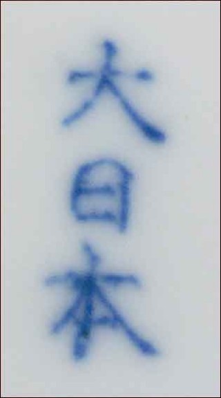Blue and white paire of saucers in japanese porcelain Imari province made during the 1940's. Signed on the back Dai Nippon for Great Japan Showa period (1926-1988). 5 3/8" diameter.
