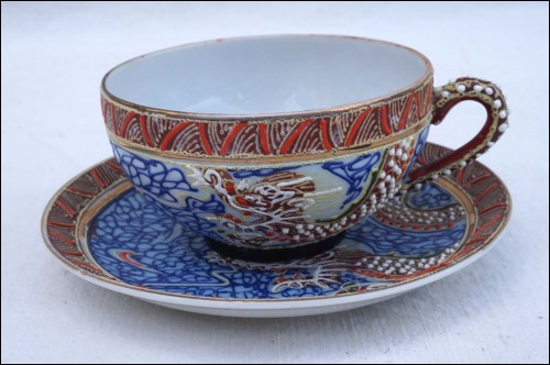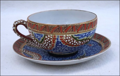 Japanese Dragonware Moriage Geish Lithopane Cup Tea Set