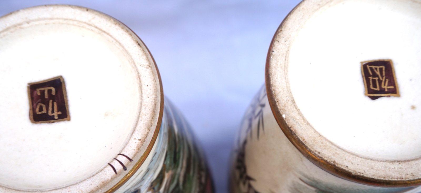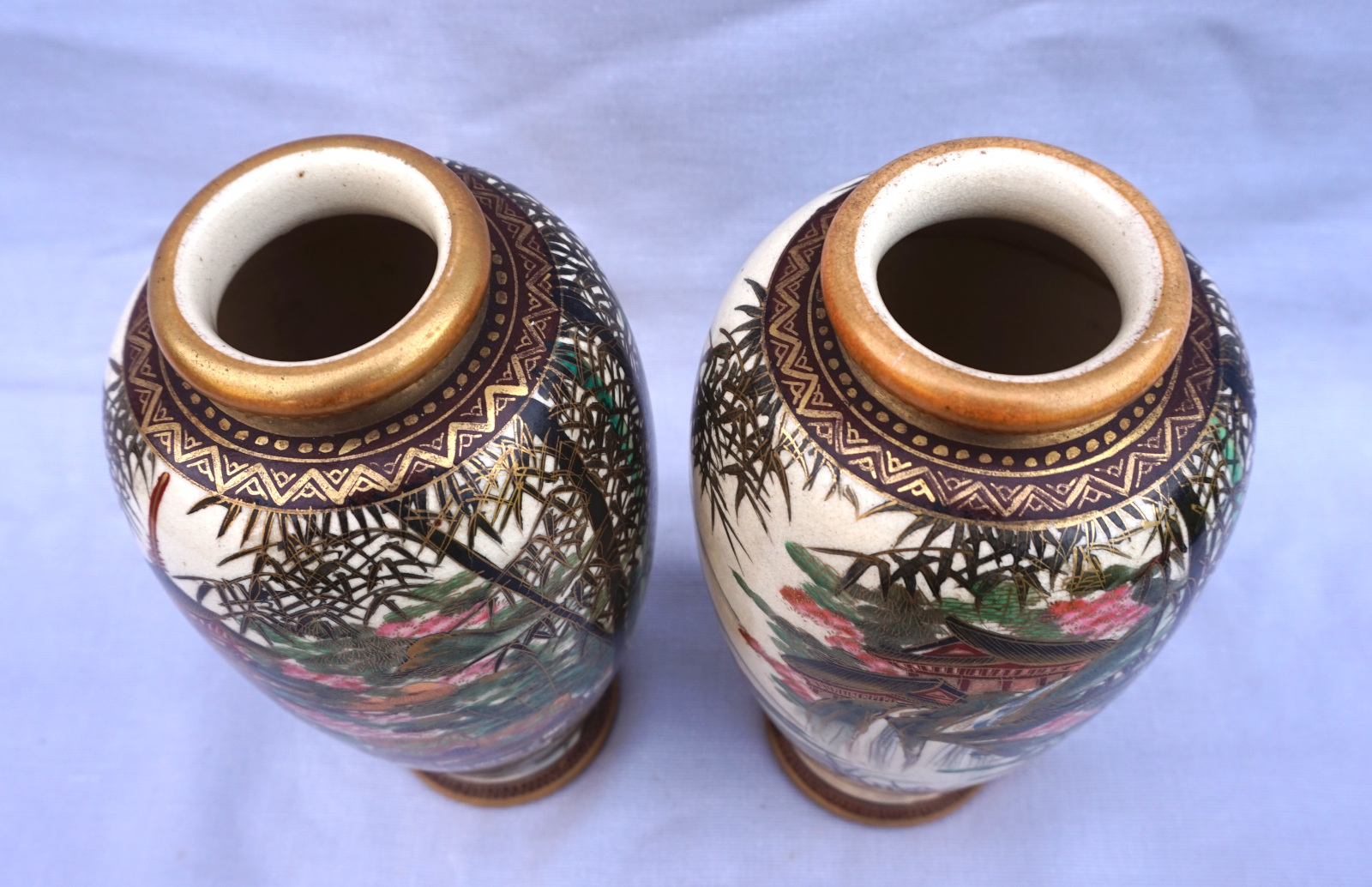 Japanese Kyoto Satsuma Porcelain Pair Vases Kumamoto Castle Kayama Kazan Taisho area 1910's