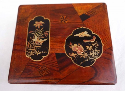 Japanese Paper Mache Lacquered Box Bird Biscuit Olibet Signed