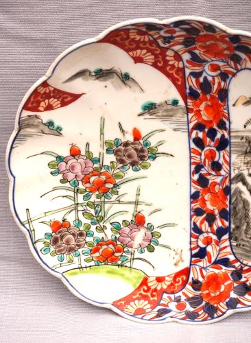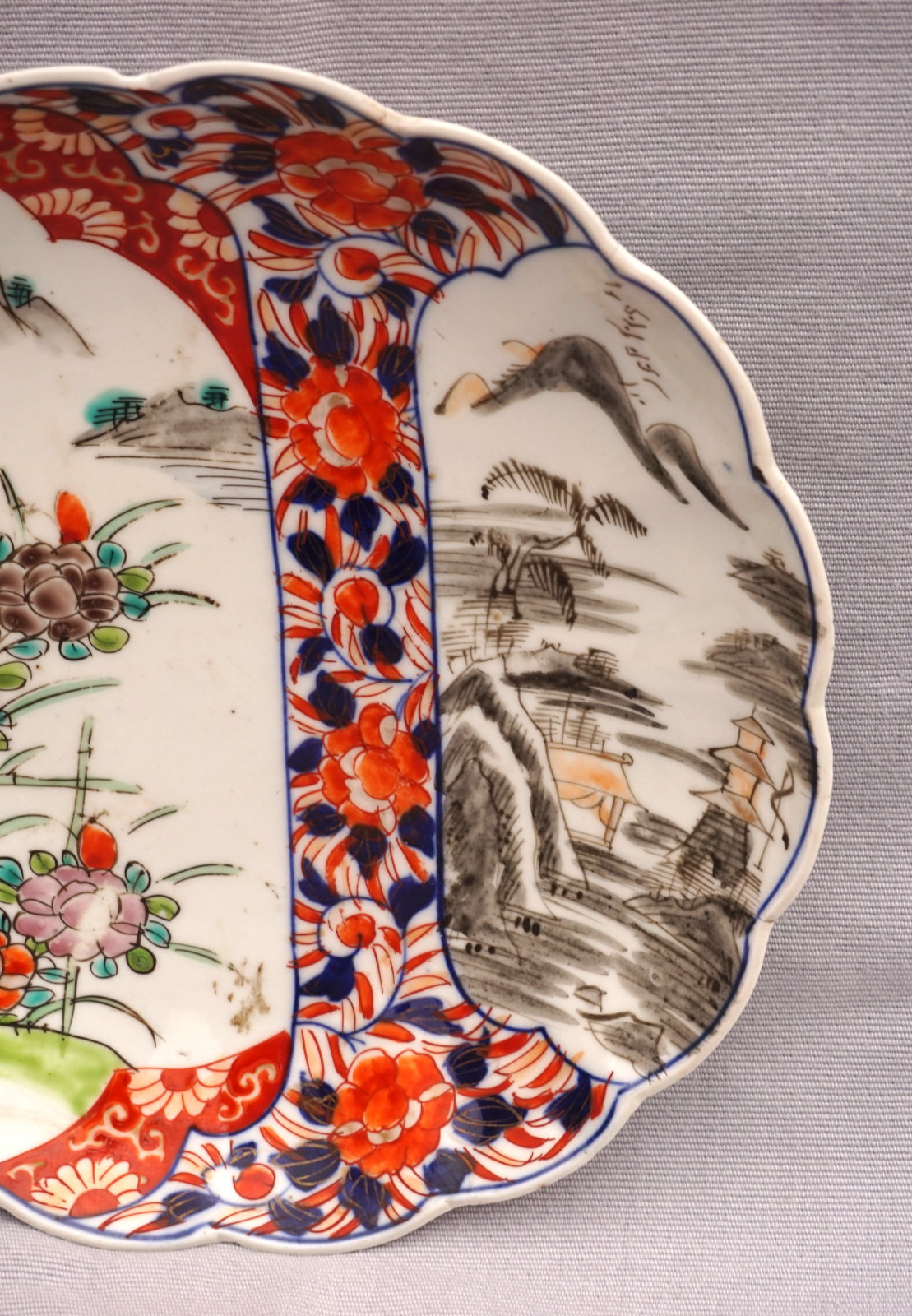 Japanese Porcelain Scalloped Plate Flowers Landscape Arita 19th C
