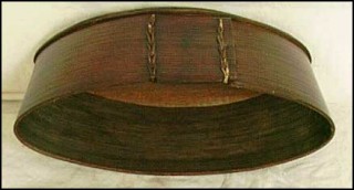 This old Chinese food box made in China circa 1880. It's good condition. It isn't signed. It's composed with two wood bottoms and bamboo leaves for the side closed by nailed brass thread . Diameter 9"1/4 tall 5" width.