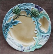 Majolica Artichoke Asparagus Plate Onnaing 1900
