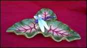 Valli Majolica Trompe l'Oeil Sorrel Bloody Dock Dragonfly Trefoil Dish Italy