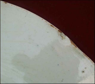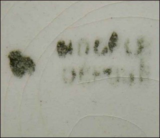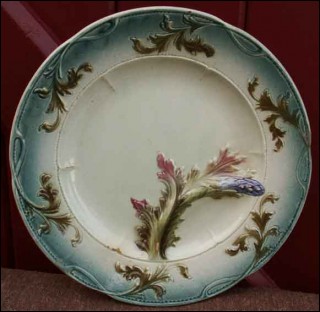 Assiette à asperges en barbotine, vers 1880-1900. Très bon état, grenure d'origine sous couverte. Diamètre 24 cm.