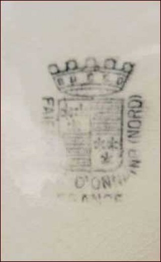 Rare assiette à grillade en faïence de la célèbre manufacture d'Onaing près de Valenciennes, vers 1860-80. Elle est peinte à la main et en bon état. Diamètre 26 cm.