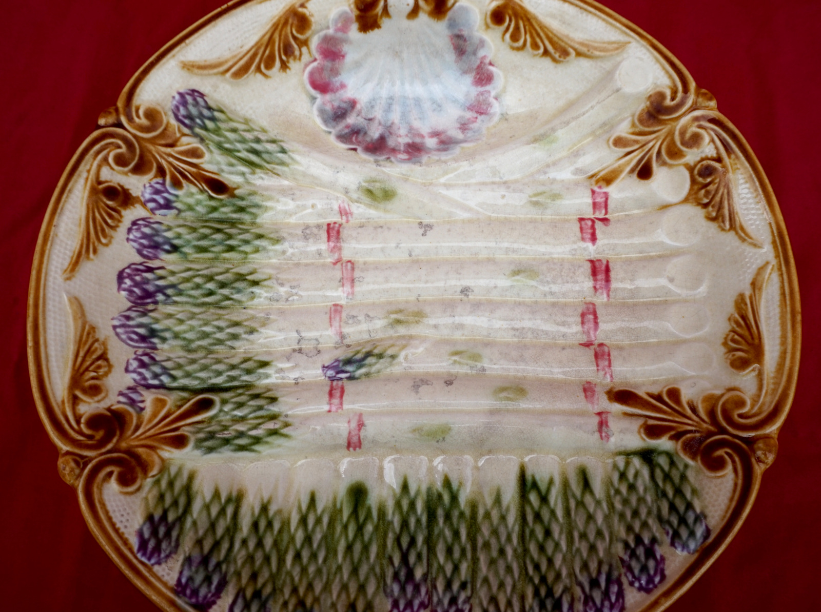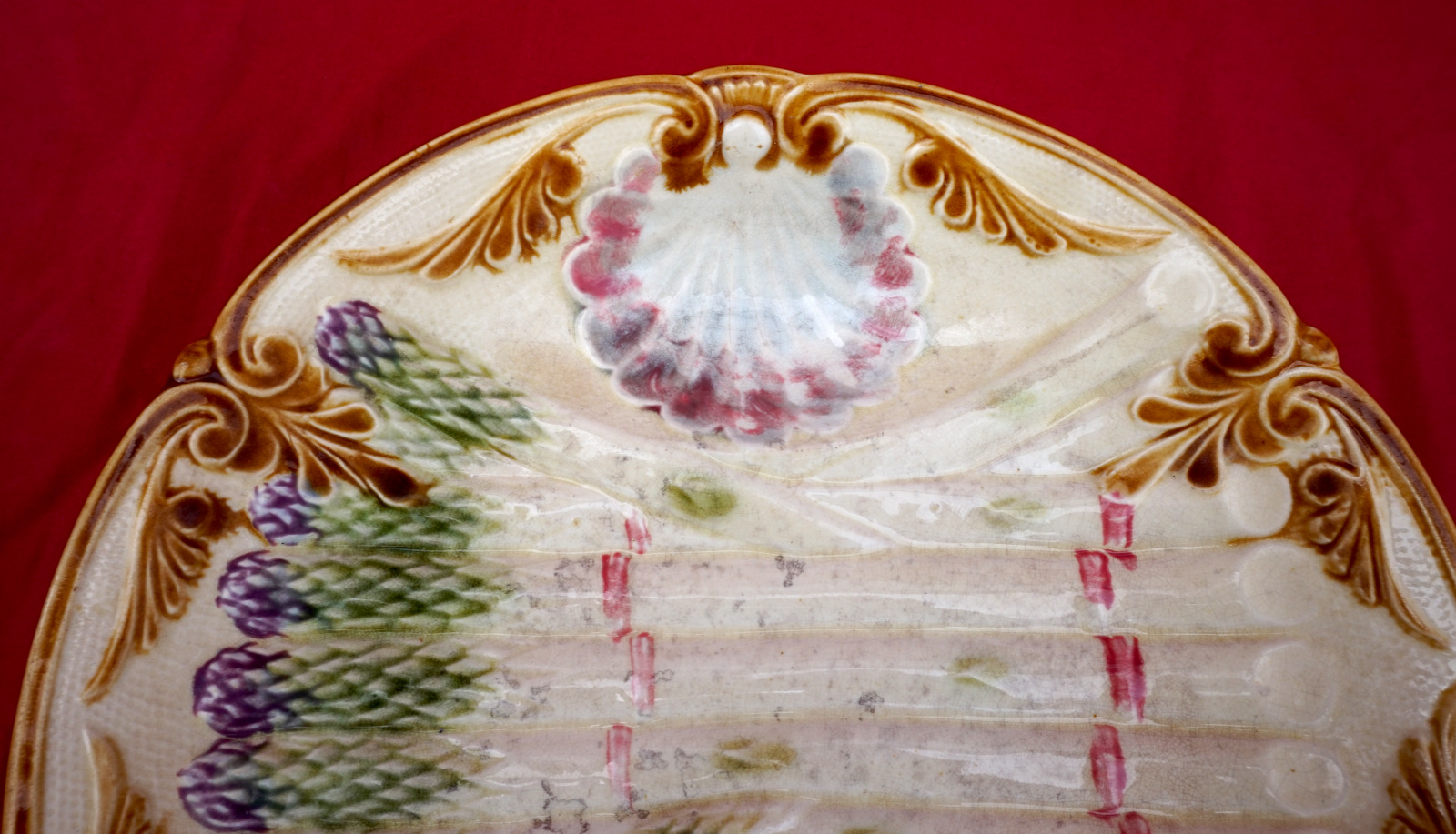 ONNAING Asparagus Plate Hand Painted Faience 1900's