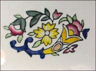 Assiette à asperge en barbotine de la manufacture de Longwy, modèle Vieux Rouen, vers 1920. Elle est pente à la main. Elle est signée et en bon état. Diamètre 25.5 cm.