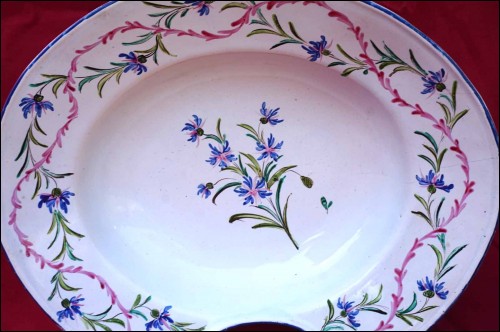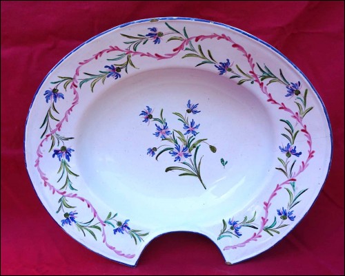 Barber Shaving Bowl Chantilly Faience Cornflower Barbeaux Decor 18th C