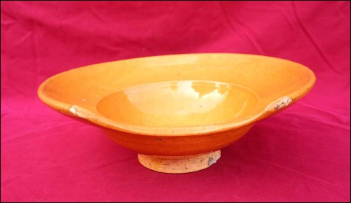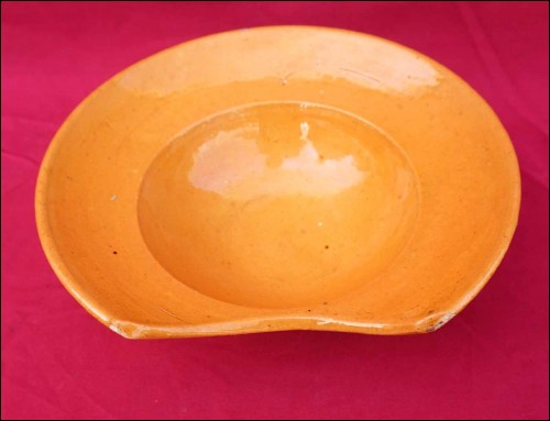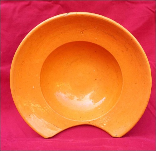 Plat à barbe en poterie de Normandie, du milieu XIX° siècle. Bel état, rares égrenures. Diamètre 23.5 cm, hauteur 8 cm.