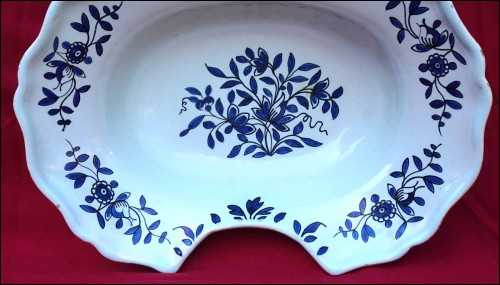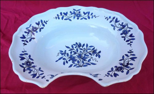 Barber Shaving Bowl Rouen Blue White Hand Painted Faience Late 18th C