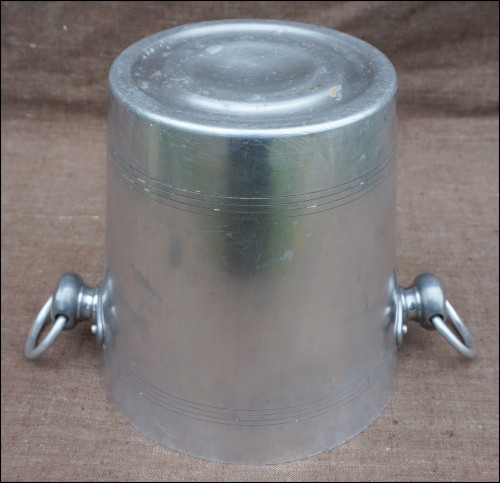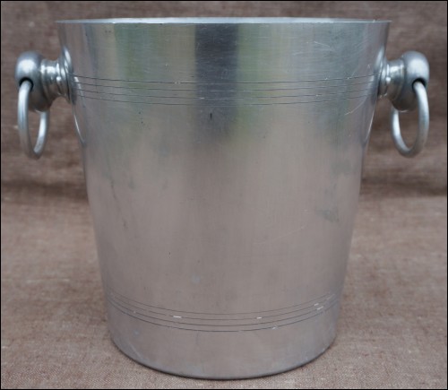 Original aluminum champagne ice bucket cooler made in France for the famous Laurent Perrier champagne owner in Tours sur Marne during the 70's. 7 3/4" high 7 3/4" diameter. Good condition as you can see on the following pictures.