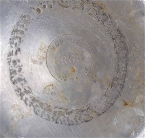 Original aluminum champagne ice bucket made in France for the famous Bricout champagne grower in Avize during the 50's. It's stamped on the back Argit made in France. 8 1/8" (20.5cm) height, 7 1/2" (19cm) diameter. Perfect condition as shown by the following pictures.
