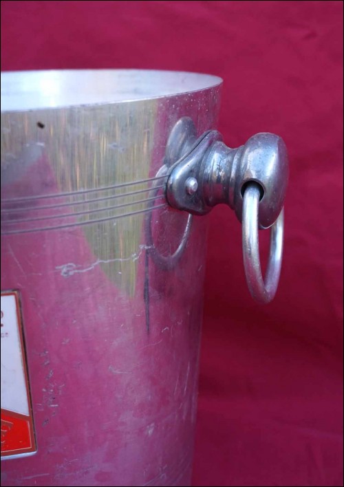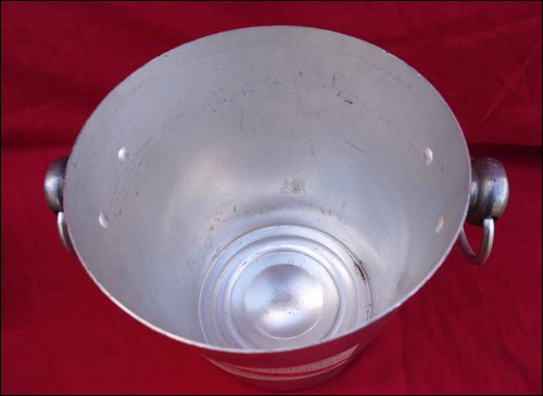 Original aluminum champagne ice bucket cooler made in France for the famous G H Mumm Cordon Rouge champagne grower in Reims during the 70's. 7 7/8" height 7 5/8" diameter. It's stamped on the back Made in France. Good condition as shown by the following pictures.