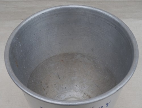 Original aluminum champagne ice bucket cooler made in France for the famous Pommery champagne during the 60's. 8 1/4" height 8 1/2" diameter. It's stamped on the back Faucogney VOGALU. Good condition, 2 small bumps on one side as presented on the following pictures.