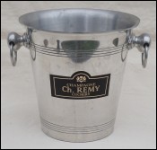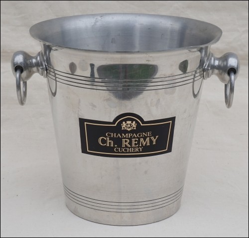 Original aluminum champagne ice bucket cooler made in France for the famous Ch. REMY champagne grower in Cuchery during the 70's. 7 7/8" high 8 1/8" diameter. It's stamped on the back Alu Pur La Bourguignonne. Good condition a few tiny bumps as presented on the following pictures.