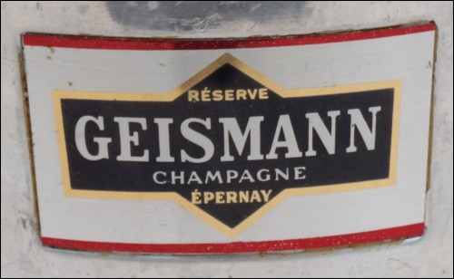 Seau en aluminium publicitaire pour rafraîchir les demies bouteilles de champagnes Geismann. Bel état d'usage. Hauteur 15 cm, diamètre 14,5 cm.