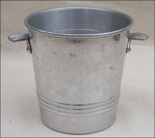 Original aluminum champagne ice bucket cooler for half bootle made in France for the famous Geismann champagne grower in Epernay during the 70's. 5 7/8" high 5 3/4" diameter. Good condition as presented on the following pictures.