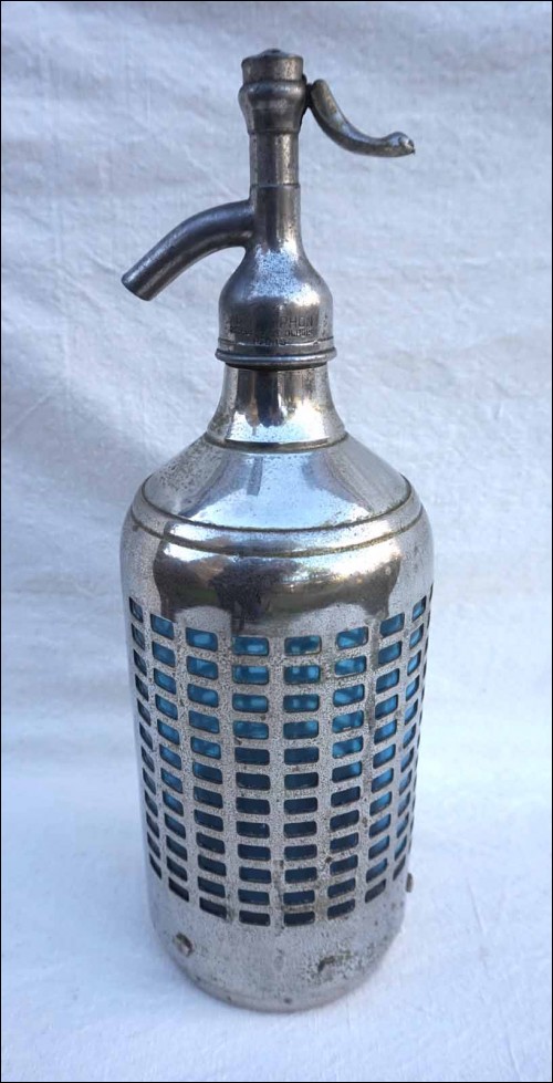Art Deco Siphon Chromium Metal Case Blue Glass Auto Siphon Paris