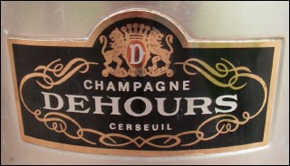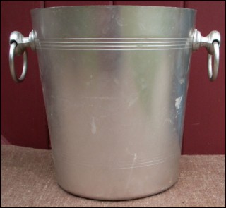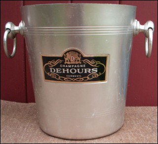 Seau à glace publicitaire pour rafraîchir les champagnes Dehours à Cerseuil. Il en aluminium, orné d'anneaux. Hauteur 20,5 cm, diamètre 19,2 cm.