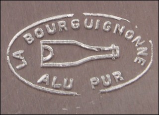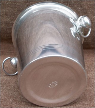 Original aluminum champagne ice bucket made in France for the famous F Verrier champagne grower in Etoges during the 60's. Perfect condition, stamped on the back La Bourguignonne made in France. 8 1/8" high 8 1/4" diameter.