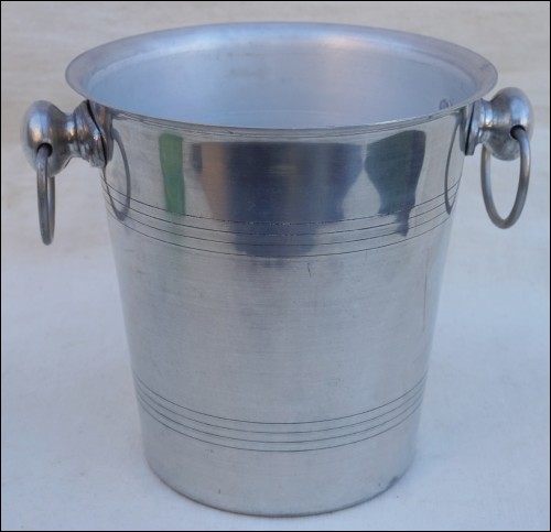 Original aluminum champagne ice bucket cooler made in France for the famous Du Mont Hauban champagne grower in Monthelon Morangis Epernay during the 60's. 7 7/8" (20cm) height 7 7/8" (20cm) diameter. Perfect condition as presented on the following pictures.