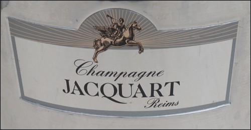 Seau publicitaire en aluminium pour rafraîchir les champagnes Jacquart de Reims, deuxième moitié XXème. Maqué sur son fond Made In France. Bel état. Hauteur 20,5 cm, diamètre 20,5 cm.