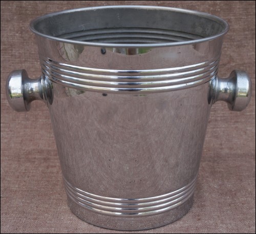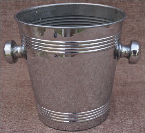 Seau Art Déco pour rafraîchir les champagnes en laiton chromé, 40's. Bel état, peu d'usage. Hauteur 21 cm, largeur 19,5 cm.