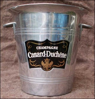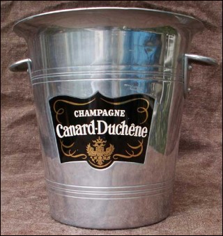 This original aluminum champagne ice bucket has been made in France for the famous Canard Duchene champagne grower in Reims during the 50's. Good condition despite to the use. 8"1/4 high 8"1/4 diameter