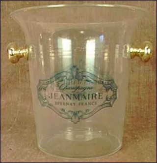 This original crystal plexiglas champagne ice bucket has been made in France for the famous Jeanmaire champagne grower in Epernay during the 70's. Good condition despite to the use. 8"3/8 tall, 8"2/8 diameter.