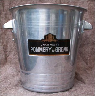 This original aluminum champagne ice bucket cooler has been made in France for the famous Pommery & Greno champagne grower in Reims. 8"1/4 high 8"1/4 diameter. Good condition stamped on the bottom.