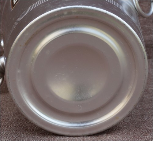 Seau à glace en aluminium pour rafraîchir les champagnes Lansson carte noire dans les 80's. Signé sur son fond Argit France. Hauteur 20 cm, diamètre 19,8 cm.
