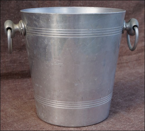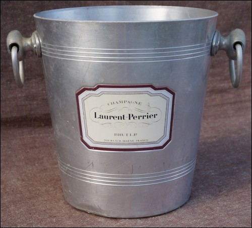 Original aluminum champagne ice bucket cooler made in France for the famous Laurent Perrier champagne owner in Tours sur Marne by Argit during the 70's. 8 3/8" high 7 5/8" diameter. Good condition,a few scratches and one bump on the base as you can see on the pictures below.