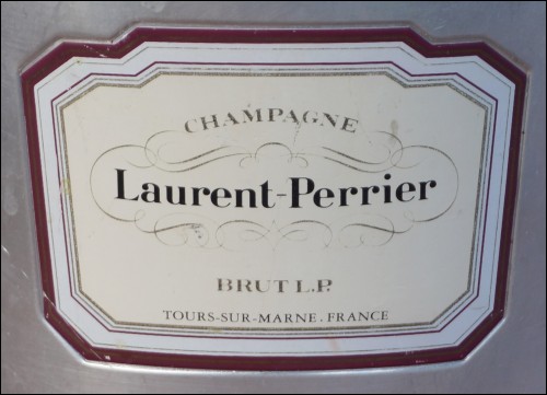 Seau en aluminium pour rafraîchir les champagnes de la maison Laurent Perrier par Argit,vers 1970. Il est en bel état d'usage, rayures sur le pourtour et un choc à la base. Hauteur 21,2 cm, diamètre 19,3 cm.