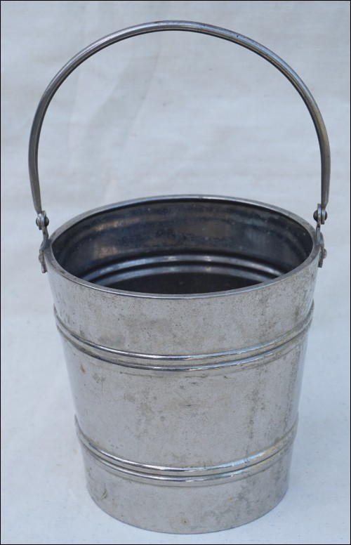 French stainless steel ice bucket for individual bottle of champagne made for De Belval & Cie champagne owner in Vertus near Epernay during the 1950's. 5 3/8" height without handle and 5 1/8" diameter. Good condition as presented on the folowing pictures