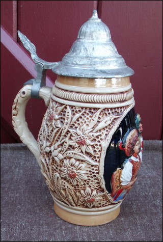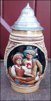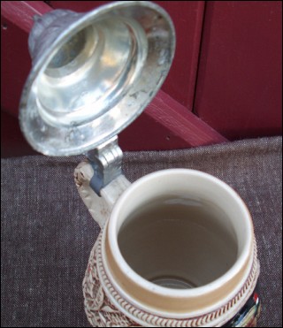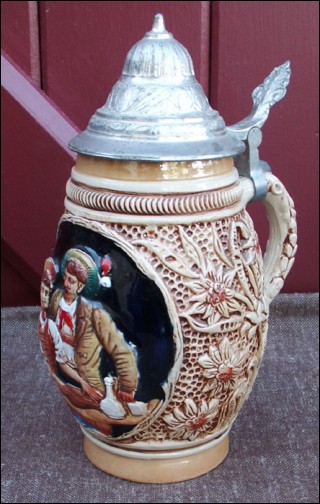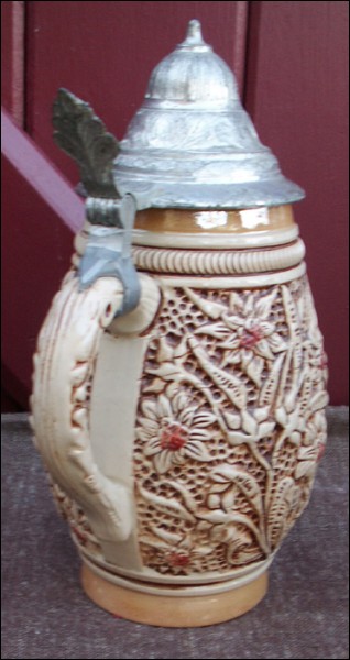 Pewter Lidded Ceramic Beer Stein King Germany 1940
