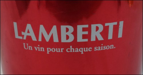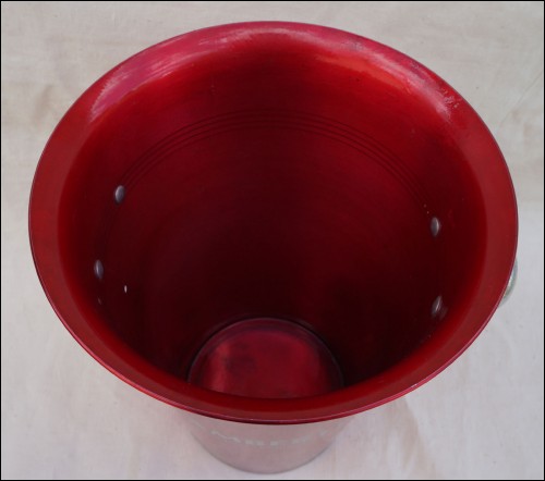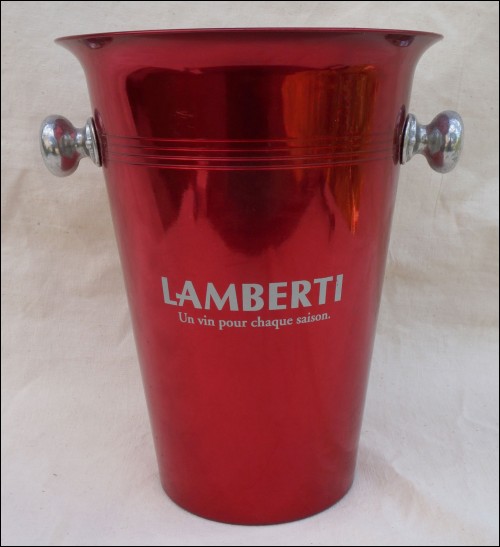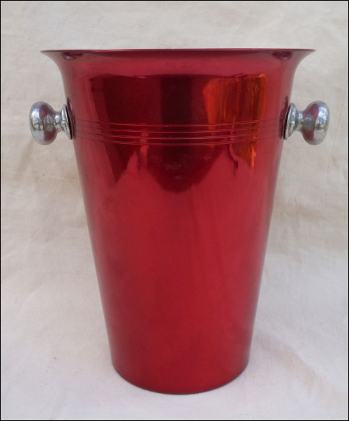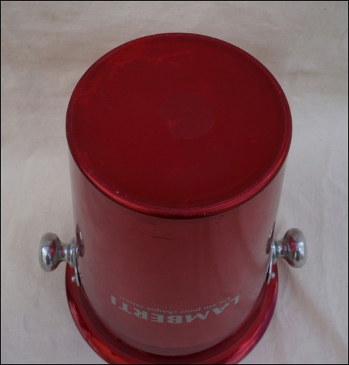 For our French-speaking friends Seau à rafraichir les vins Lamberti en aluminium adonisé rouge vers 1960. Hauteur 25,5 cm diamètre 20 cm.