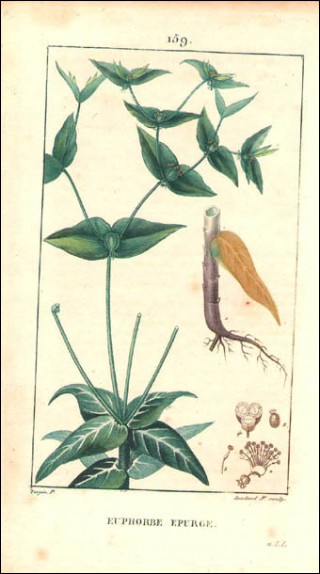 Pierre J. F. Turpin, gravure d' Euphorbe Epurge peinte main à l'aquarelle.
