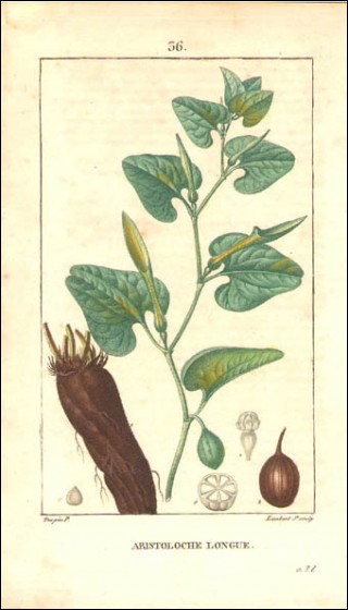 Pierre J. F. Turpin, gravure d' Aristoloche Longue peinte main à l'aquarelle.