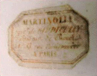 Boite à chocolats de la célèbre Maison Martinolli de Paris, vers 1910. Domicilié au numéro 33 de la rue Poissonnière à Paris. Elle est en bon état, manque une partie de filet, l'étiquette dorée est un peu passez. Hauteur 5 cm, largeur 19.5 cm, profondeur 10.5 cm.