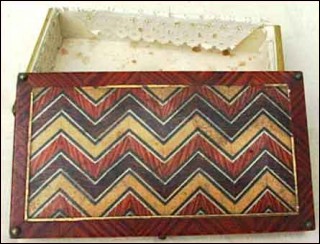 Chocolate box made for the Martinolli factory in Paris about 1910. Good condition only a part of the golden filet on the top is missingas you can see on the pictures below. 1"3/4 tall 7"3/4 width 4"1/8 depth.