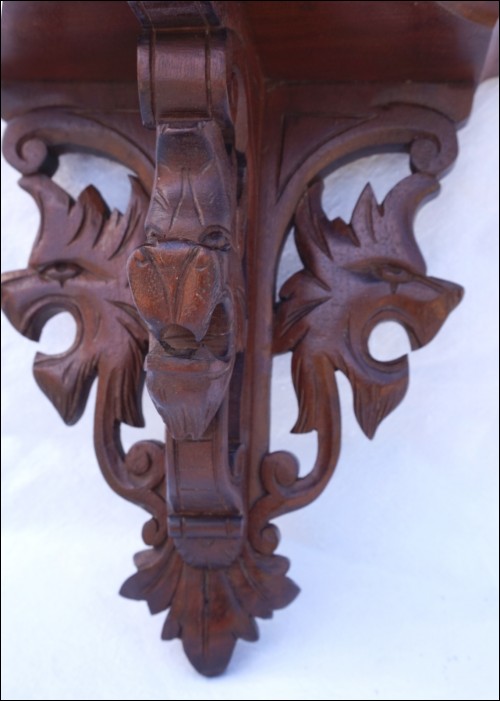 Black Forest Carved Wood Wall Hanging Shelf 1920's
